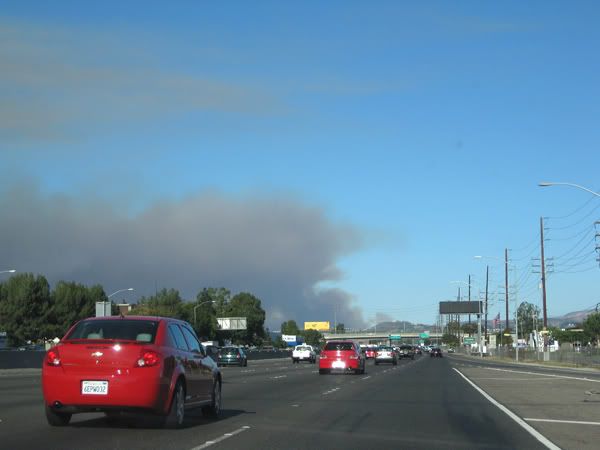 The source of smoke you see above is from the fire near rowland heights just north of us that is inching towards residential area in yorba linda. We drove past this area a week ago to see a car up in corona D: I wonder if its all black now.