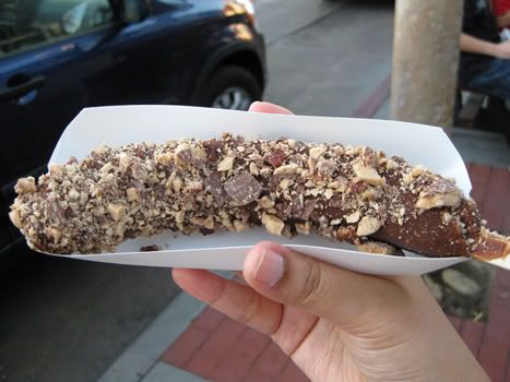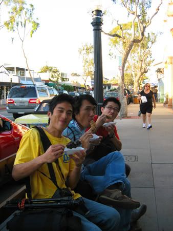 Of course we turned around. And drove back down south. Its just not worth it =<. But the sky was clearer where we came from so we decided to head to Balboa island to experience THE FROZEN BANANA. My dear arrested devlopment fans i went to the Island not the peninsular cos there's 2 famous stalls there. Next time ill go find the stall at peninsular..or at least the location and try the candy apple that i saw Gob eating instead XD!
